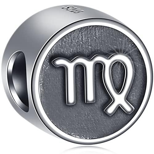 Virgo Zodiac Sign Charms fit Pandora Leather Bracelet, Antique Sterling Silver Birthday Horoscope Signs Beads Necklace, 12 Constellation Astrology Charm, Gifts for Nephew/Niece/Cousin