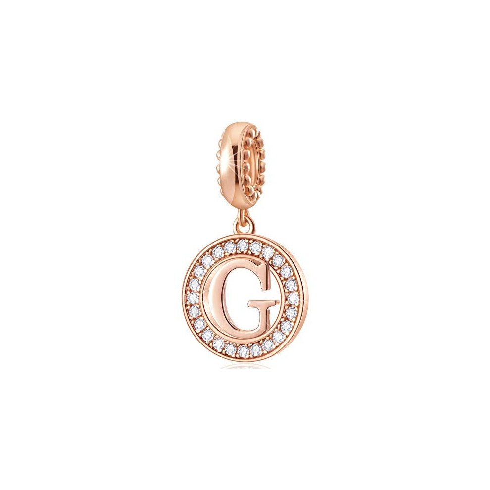 CHAWIN Initial G Letter Charms, Alphabet Charms Rose Gold, Authentic 925 Sterling Silver Charms fit Pandora Charm Bracelets, Necklace, Circle Dangle