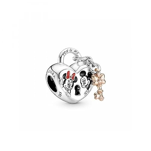 Pandora Disney Minnie and Mickey heart padlock and key sterling silver and 14k rose gold-plated charm with red, white and black enamel