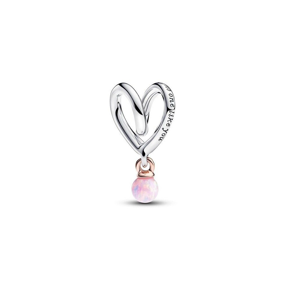 Pandora Mum Bicolor Wrapped Heart Charm 783242C01 – Sterling Silver & 14k Rose Gold-Plated, Pink Lab-Created Opal