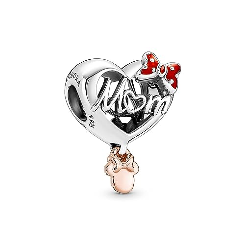 Pandora Disney Minnie Mouse mom heart sterling silver and 14k rose gold-plated charm with red enamel
