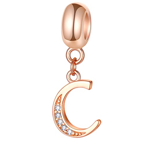 Rose Gold Letter C Charms Alphabet Beads, 925 Sterling Silver Initial C Dangle CZ Birthstone Necklace Pendant, fits Pandora Charm Bracelets, for Cousin/Couple/Christmas Gifts