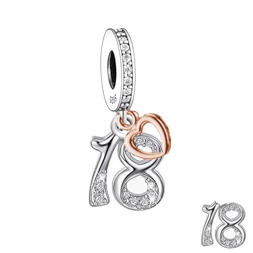 18th Birthday Charm Pandora Compatible Genuine 925 Silver & Rose Gold Daughter Dangle