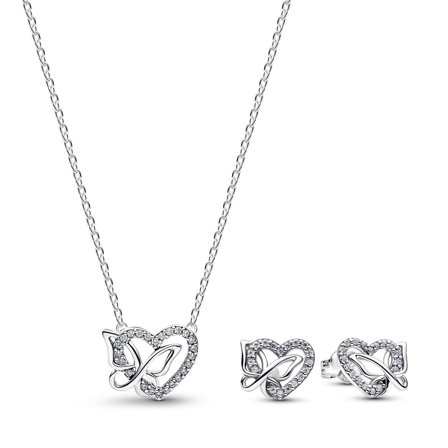 Pandora Sterling Silver Jewelry Set Necklace & Earrings 925 Heart/Zirconia