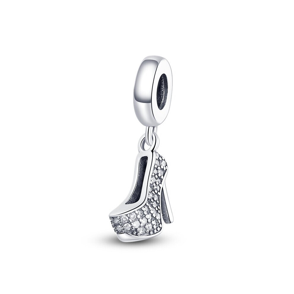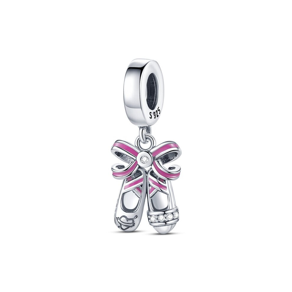 (a-KTC373) 925 Sterling Silver Pink Ballet Skates Shoes Pendant Heart Charms Fit Original Pandora Necklace Bracelet Jewelry Making Women