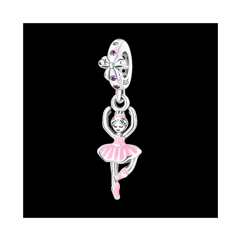 (a-PTC280) 925 Sterling Silver Pink Ballet Skates Shoes Pendant Heart Charms Fit Original Pandora Necklace Bracelet Jewelry Making Women