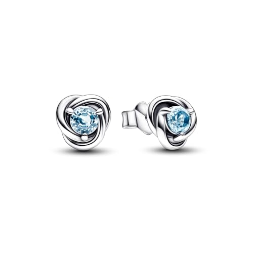Pandora March Sea Aqua Blue Eternity Circle Stud Earrings - Sterling Silver Birthstone Earrings with Man-Made Stones for Women - Gift for Her - No Box