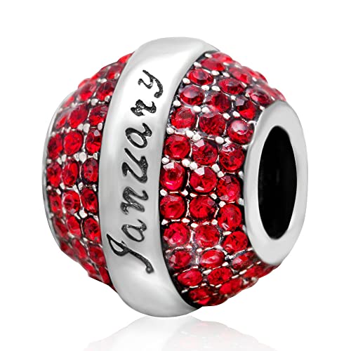January Birthstone Charms fit Pandora Moments Bracelet, 925 Sterling Silver Pave Garnet Red Crystal Stone Birth Necklace Beads with Infinity, Gifts for Couple/Happy New Year
