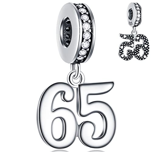 65 Birthday Dangle Charms fits Pandora Christmas Bracelet Necklace, 925 Sterling Silver 65th Anniversary Pendant Beads with CZ, Number 65 Years Bday Gift for Grandmother/Grandpa