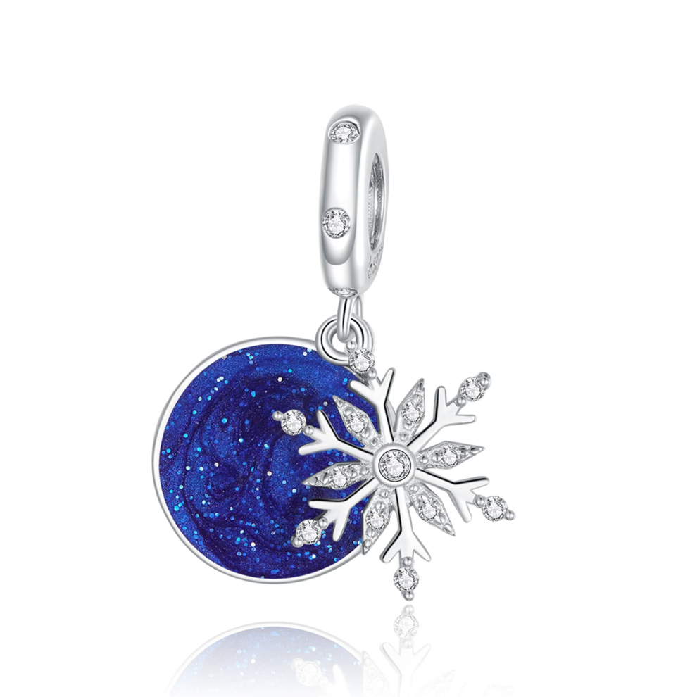 925 Sterling Silver Blue Ocean and Snowflake Charm Bead Fits Pandora Charm Bracelet