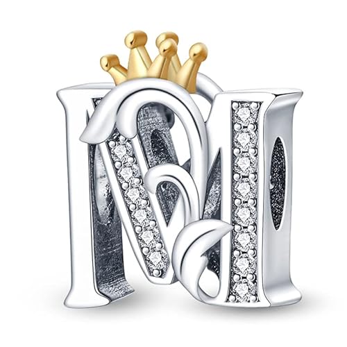 TINSLO 925 Sterling Silver Charms Beads Initial M Letter for Pandora Bracelet, Dangle Pendant Charms for Necklace and Bracelet Jewelry Gifts for Women Girls