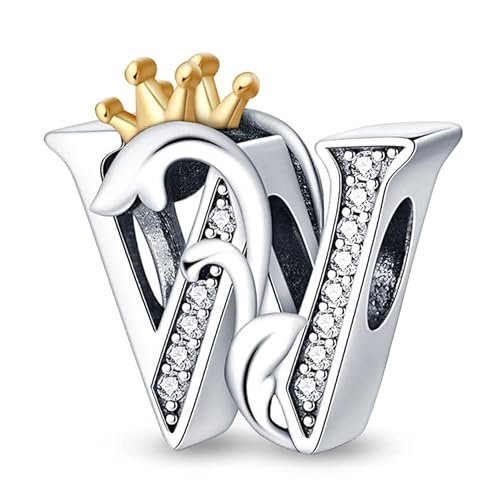 TINSLO 925 Sterling Silver Charms Beads Initial W Letter for Pandora Bracelet, Dangle Pendant Charms for Necklace and Bracelet Jewelry Gifts for Women Girls