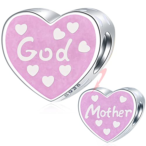 Pink Enamel Godmother Heart Charms, fits Pandora Mothers Day Bracelet, 925 Sterling Silver Godmummy Motherly Love Beads, Gift for Godmum/Christmas Thanksgiving/Daughter/Son