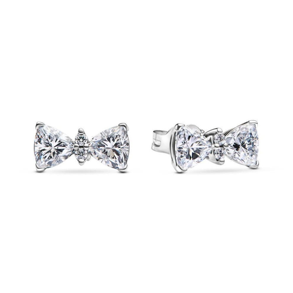 Pandora 293506c01 Sparkling Bow Stud Earrings - Sterling Silver With Clear Cubic Zirconia
