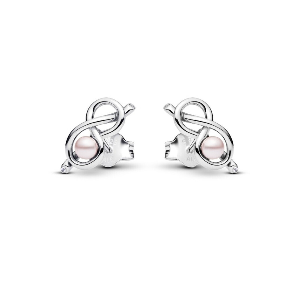 Pandora Infinity Knot Stud Earrings With Pink Pearls 293761C01