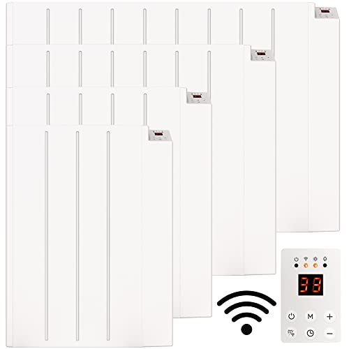 Mylek Radiator Mica Panel Radiant Heater White, Wifi Enabled Smart APP 2000W Electric, Triac Thermostat, Wall Mounted Or Free Standing, Low Energy Heater, Timer, Lot 20, (White 2KW)