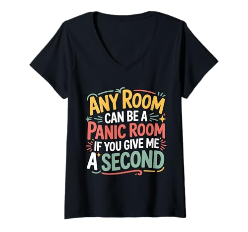 Women's Any Room Can Be A Panic Room If You Give Me A Second - V-Neck T-Shirt