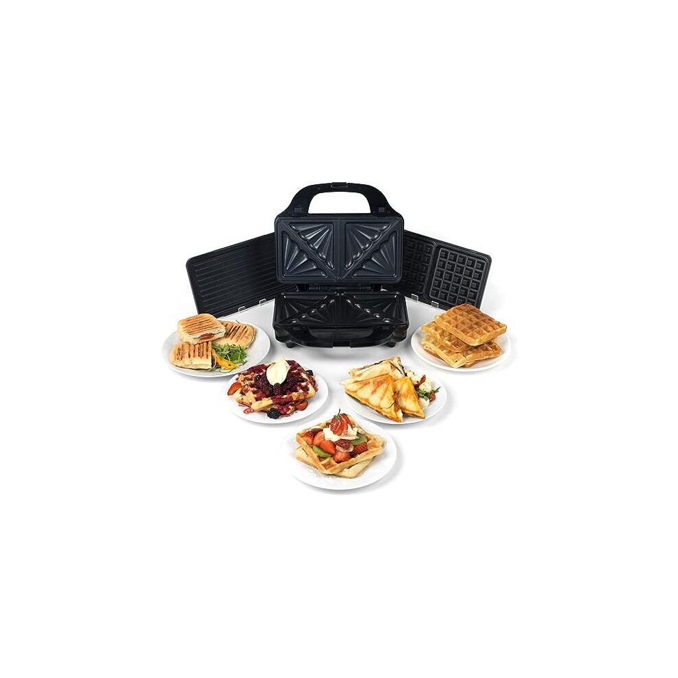 Salter EK2143 3-in-1 Snack Maker -Deep Fill Waffle Iron, Sandwich Panini Press & Toastie Maker, Interchangeable Non-Stick Plates,900W,Indicator Lights