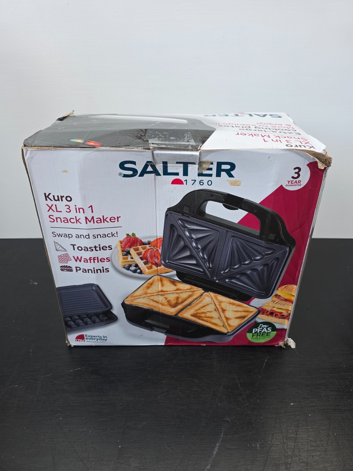 Salter Kuro XL 3-in-1 Snack Maker Toastie Waffle Panini Press XL Plates Non-Stic