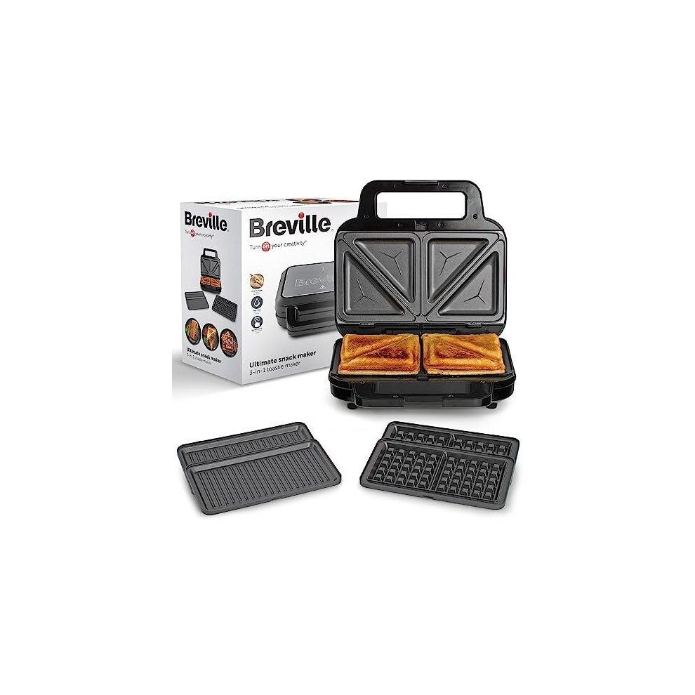 Breville 3-in-1 Ultimate Snack Maker | Deep Fill Toastie Maker, Waffle Maker & Panini Press | Removable Non-Stick Plates | Black & Stainless Steel