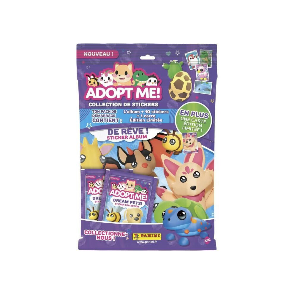 Starter pack - PANINI - Adopt Me! Roblox - Album + 2 packets - 1 limited edition card - 10 stickers
