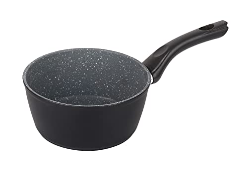 URBN-CHEF FORGECROSS Black & Grey Marble Forged Pressed Aluminium Non Stick Induction Safe Cooking Pots Pans Saucepans Cookware (16cm Milkpan)