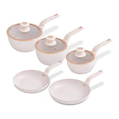 GiPP Nonstick Pots and Pans Set,10Pcs Induction Cookware Sets,Non Stick Ceramic Cooking Set with Frying Pans,Saucepans,Suitable for All Stoves (White, 10PCS)