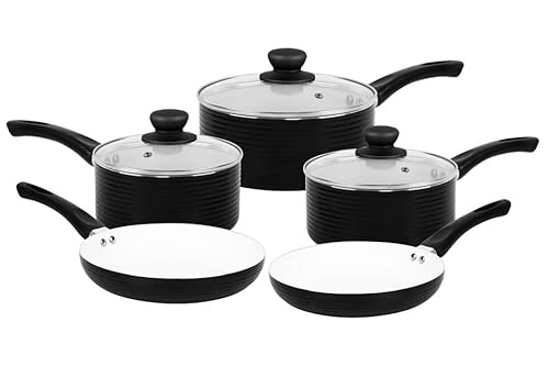 URBN-CHEF 8Pcs Non-Stick Ribbed Aluminium Induction Hob Cookware Set with Saucepans, Pots, Lids, and Frying Pans - Heat-Resistant Handles, Durable Cooking Set for Home Kitchen Use