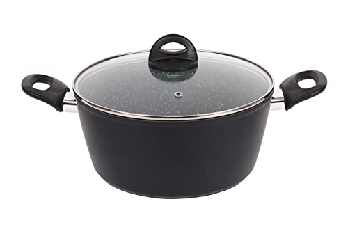URBN-CHEF FORGECROSS Black & Grey Marble Forged Pressed Aluminium Non Stick Induction Safe Cooking Pots Pans Saucepans Cookware (22cm Casserole Pot)
