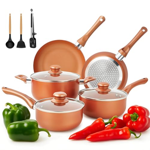 SHEUMNT Nonstick Cookware Set 11 Piece, Oven Broiler Safe 350F, Pots and Pans, Kitchen Cooking Set Fry Pans, Saucepans, Saute Pan, Kitchen, Home, Dishwasher Safe