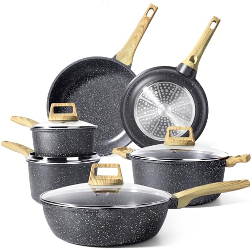 GiPP Nonstick Pots and Pans Set,10Pcs Induction Cookware Sets,Non Stick Ceramic Cooking Set with Frying Pans,Saucepans,Suitable for All Stoves (Grey, 10PCS)