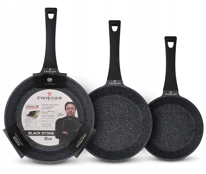 ZWIEGER BLACK STONE SET OF FRYPANS 3 PCS FRYING PANS 20, 24, 28 CM ALUMINIUM PAN