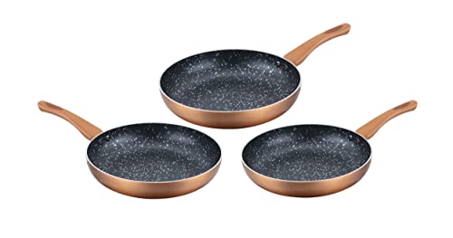 CENOCCO CC-2001 Set of 3 Stone Frying Pans for All Heat Sources Including Induction 20/24/28 cm Copper