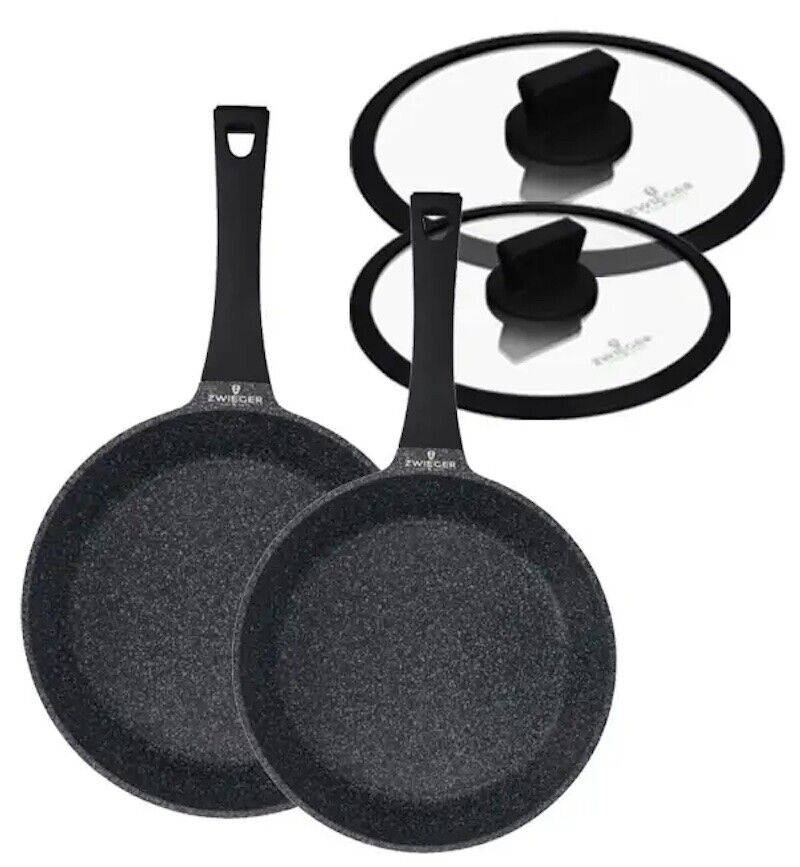 ZWIEGER BLACK STONE SET OF FRYPANS 24, 28 CM + GLASS LIDS 4 PCS, ALUMINIUM PANS