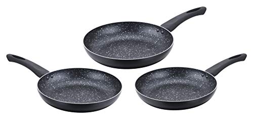 Cenocco CC2001-BLK Set of 3 Stone Frying Pans, 3 Sizes: 20 cm, 24 cm, 28 cm, for Induction Cooking, Marble Stone Coating, PFOA-Free, Black