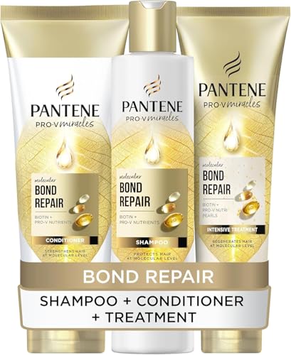 Pantene Molecular Bond Repair Shampoo + Conditioner + Deep Conditioning Hair Treatment with Biotin. For Extremely Dry Damaged Hair. Hair is Visibly Healthier, Strengthened & Repaired