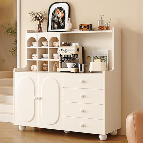 ZIGTUEI Kitchen Pantry Cabinet, Farmhouse Pantry Storage Cabinet, Freestanding Kitchen Cupboard, Modern Hutch with Storage Drawers, for Dining Room Living Room Furniture(White,128x100cm/50.4x39.4in)
