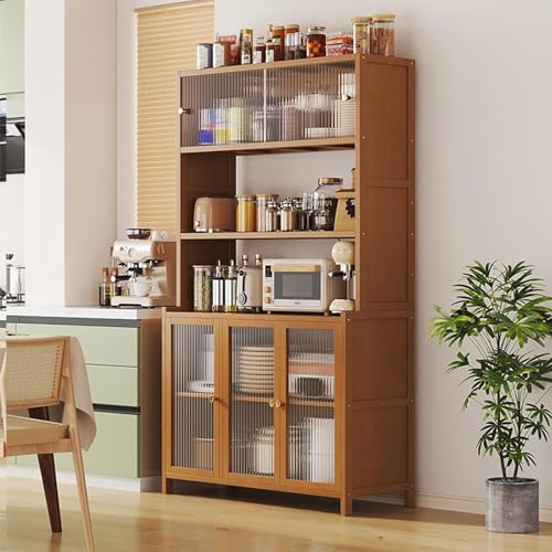 LHXLSH Cabinet with Doors Storage & Adjustable Shelves, Farmhouse Kitchen Pantry, Pantry Cabinet, Freestanding Kitchen Cupboard, For Coffee Bar, Dining Room, Table Top-Retro(Light brown,80cm/31.4in)