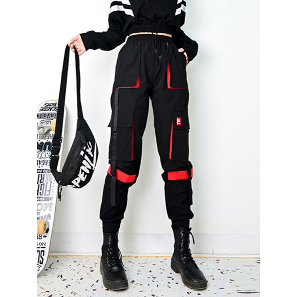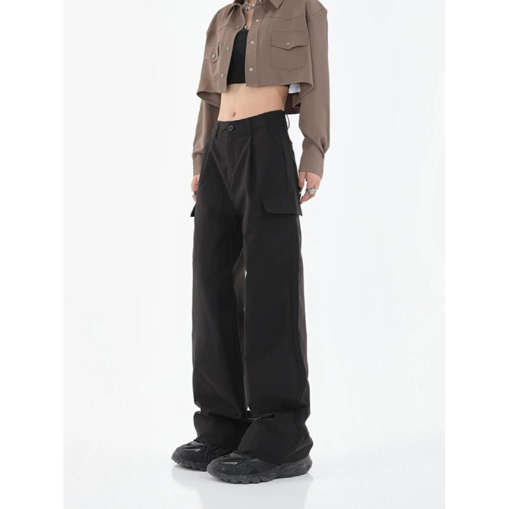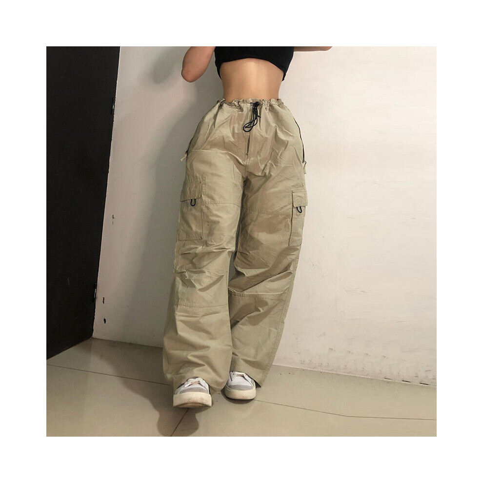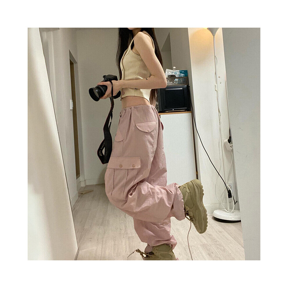 Style Streetwear High Waist Pockets Cargo Pants Womens Casual Loose Wide Leg Joggers Sweatpants Harajuku