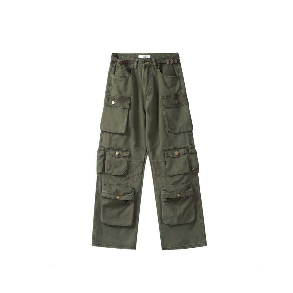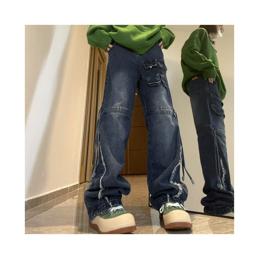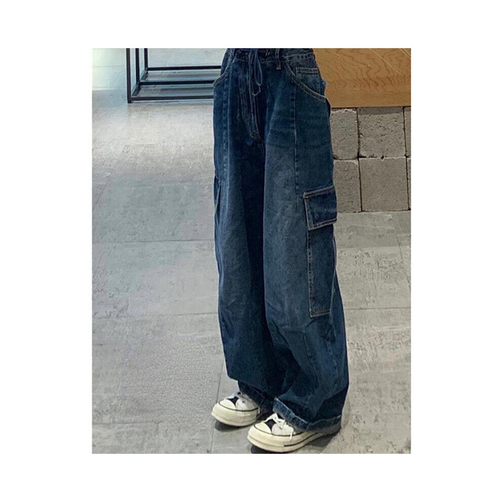 Harajuku High Street INS vintage cargo pants womens autumn and winter waist multi-pocket wide leg jeans womens