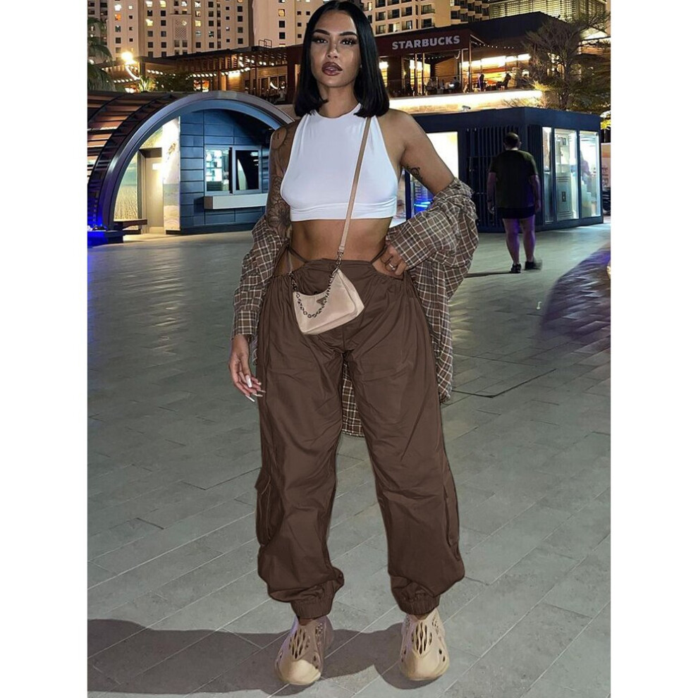 Autumn Bandage High Waist Cargo Pants For Women's Y2K Loose Trousers Pocket Sweatpants Sports Streetwear