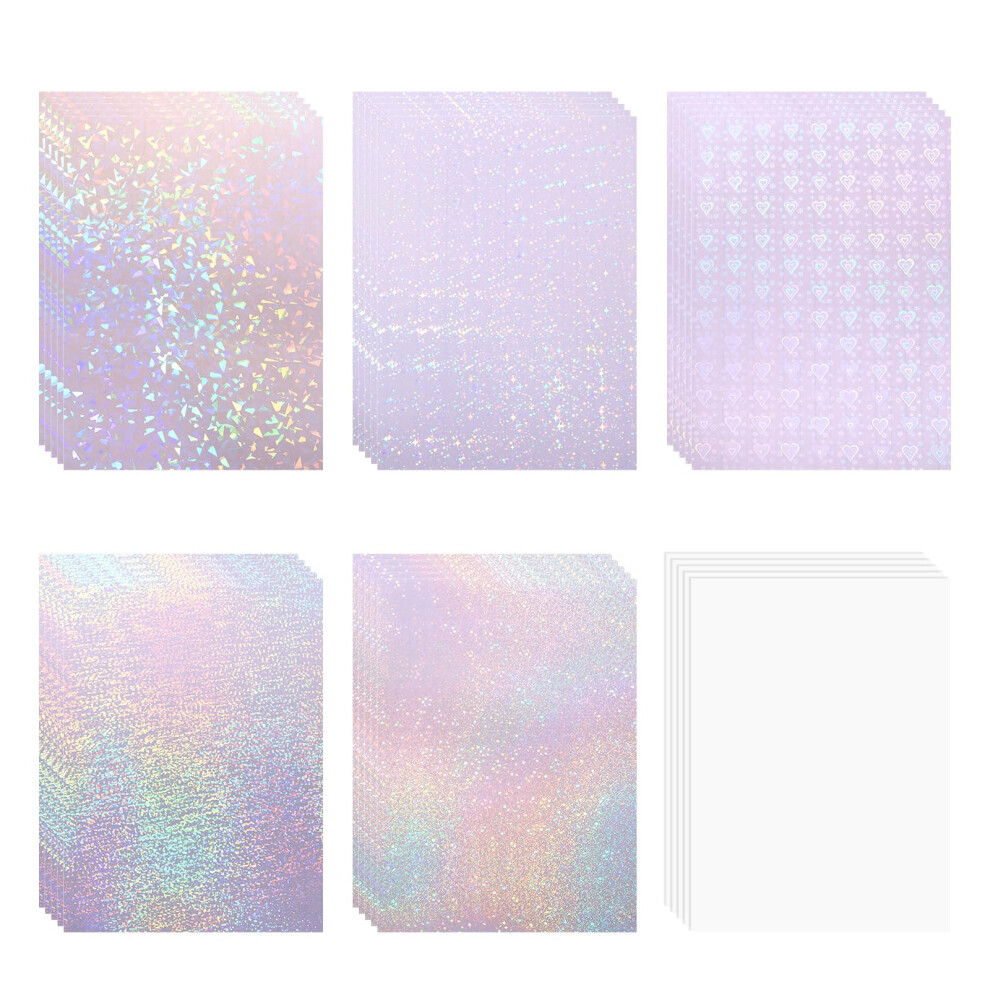 5 Sheets Transparent Holographic Overlay Lamination Vinyl A4 Size Self-Adhesive Laminate Waterproof Vinyl Sticker Paper