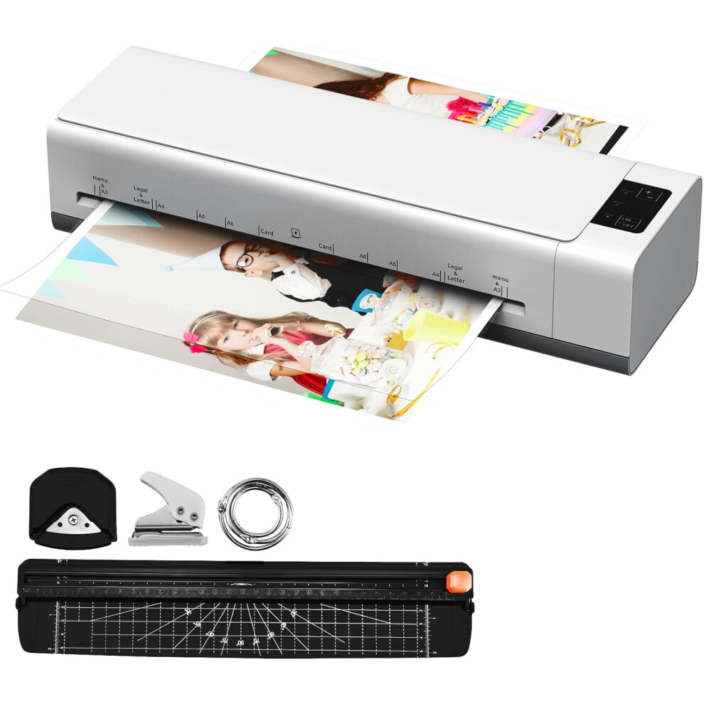 Thermal Laminator For A4 A5 A6, Laminator Machine 3-In-1 Desktop With Paper Trimmer Punch Corner Rounder, Fast Warm-Up Smooth Lamination Jam-Free