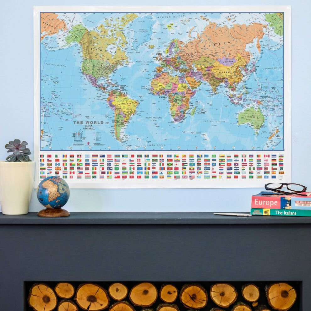 (84.1 cm x 59.4 cm, Paper Single Side Lamination) World Wall Map Political with flags