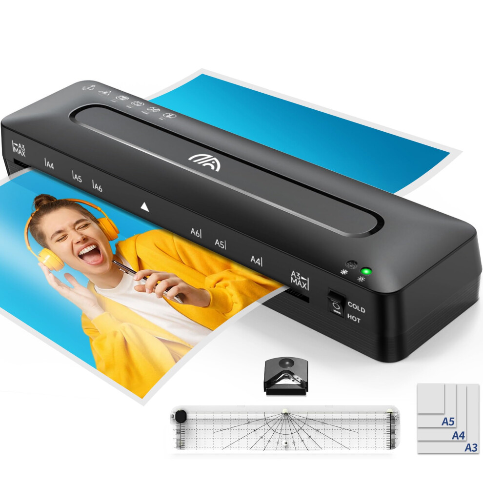 A3 Laminator Machine Laminating Machine - Cold and Thermal Laminator with Laminating Sheets for A3/A4/A5/A6, 5-in-1 Lamination Machine with Paper Trim