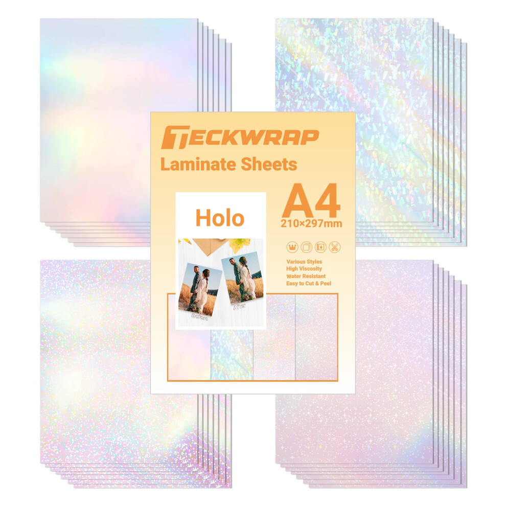 TECKWRAP Holographic Sticker Paper Clear Overlay Lamination Vinyl Patterns Laminate Sticker Film 8.26" x 11.69" A4 210mm x 297mm 28 Sheets/Pack for