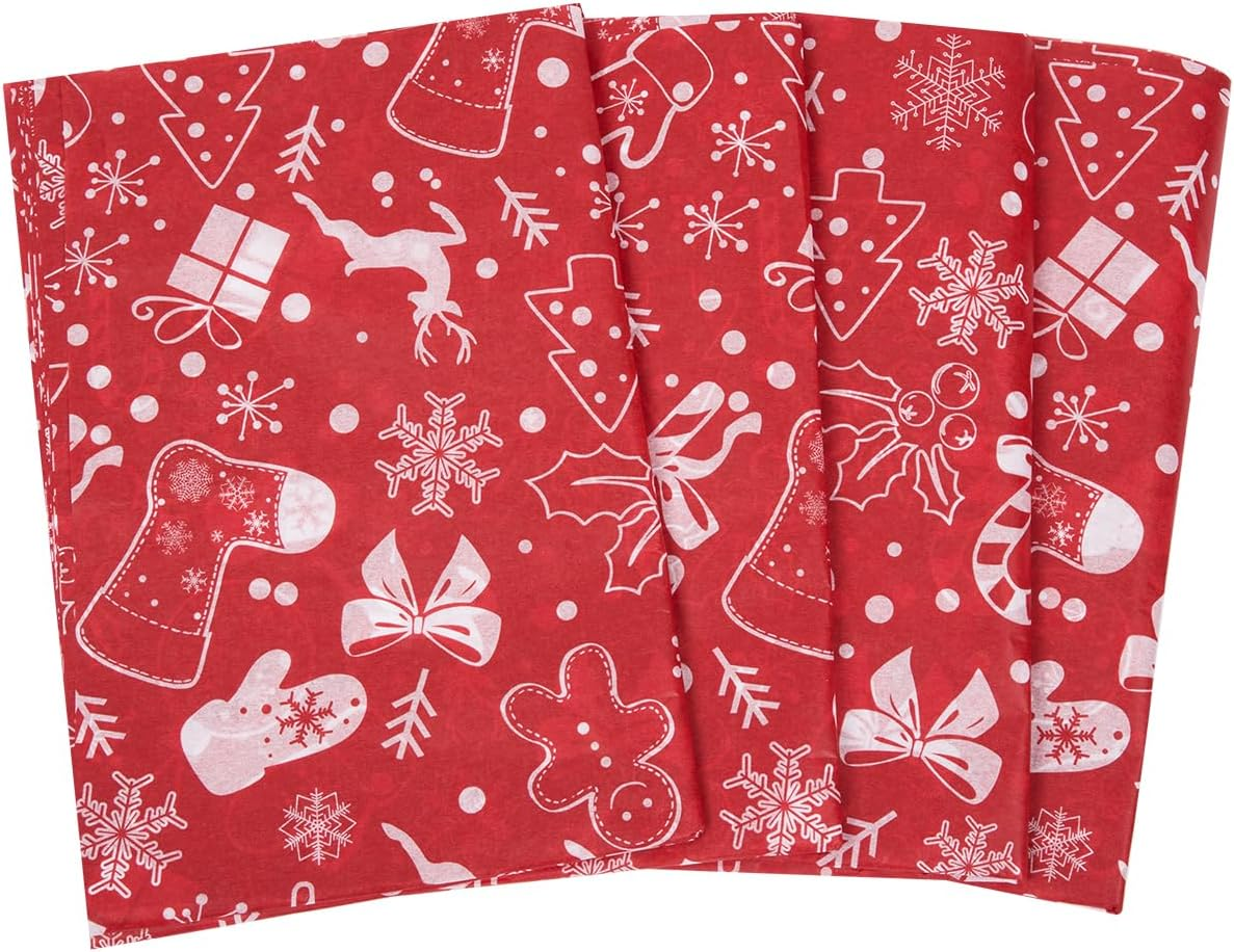Christmas Tissue Paper for Gift Wrapping : 50 Sheets Festive Design Red Tissue W