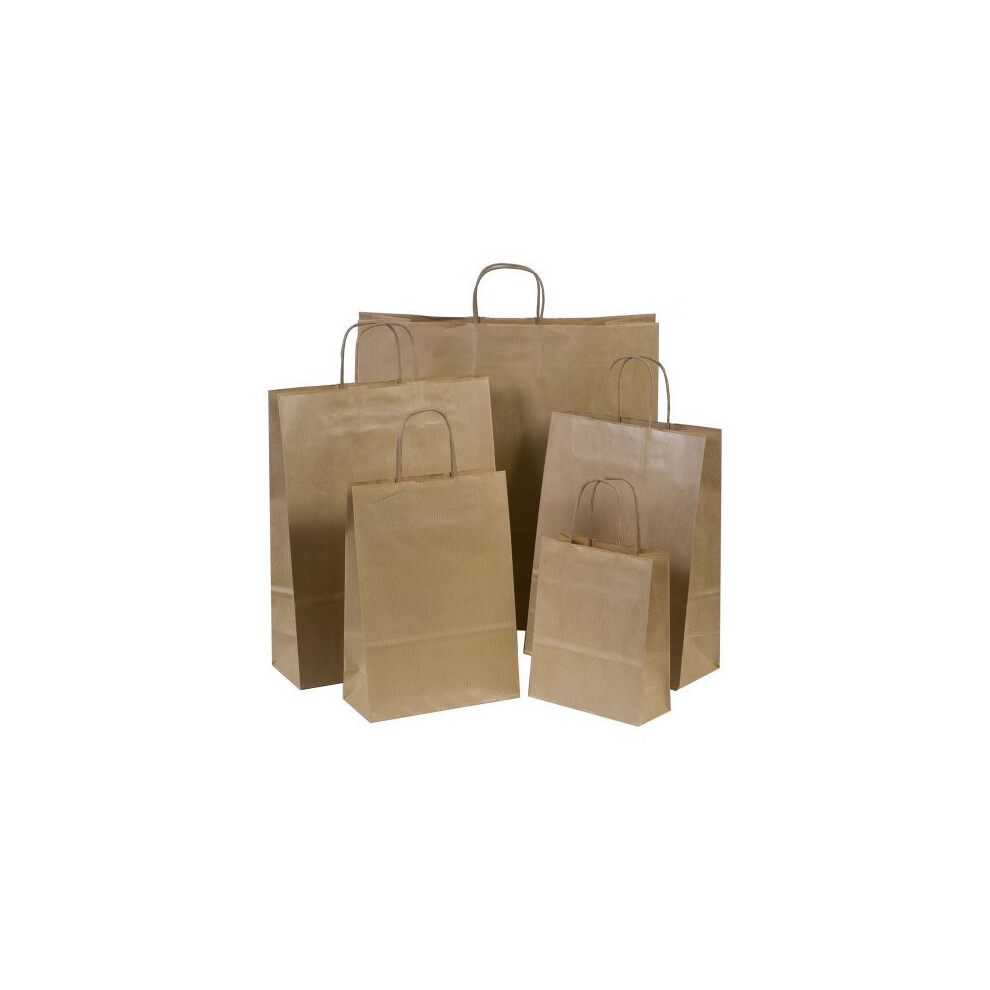 50x Brown Paper Gift Bags with Twisted Handles - 18cm x 22cm x 8cm by Paper Bags