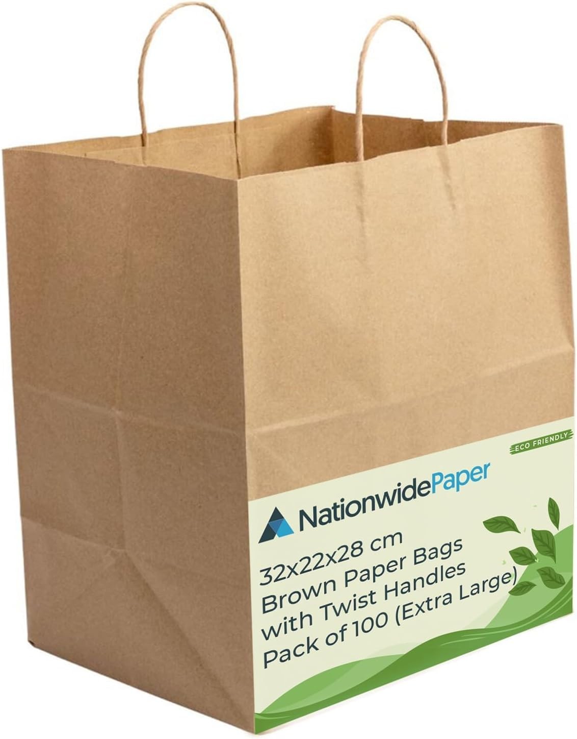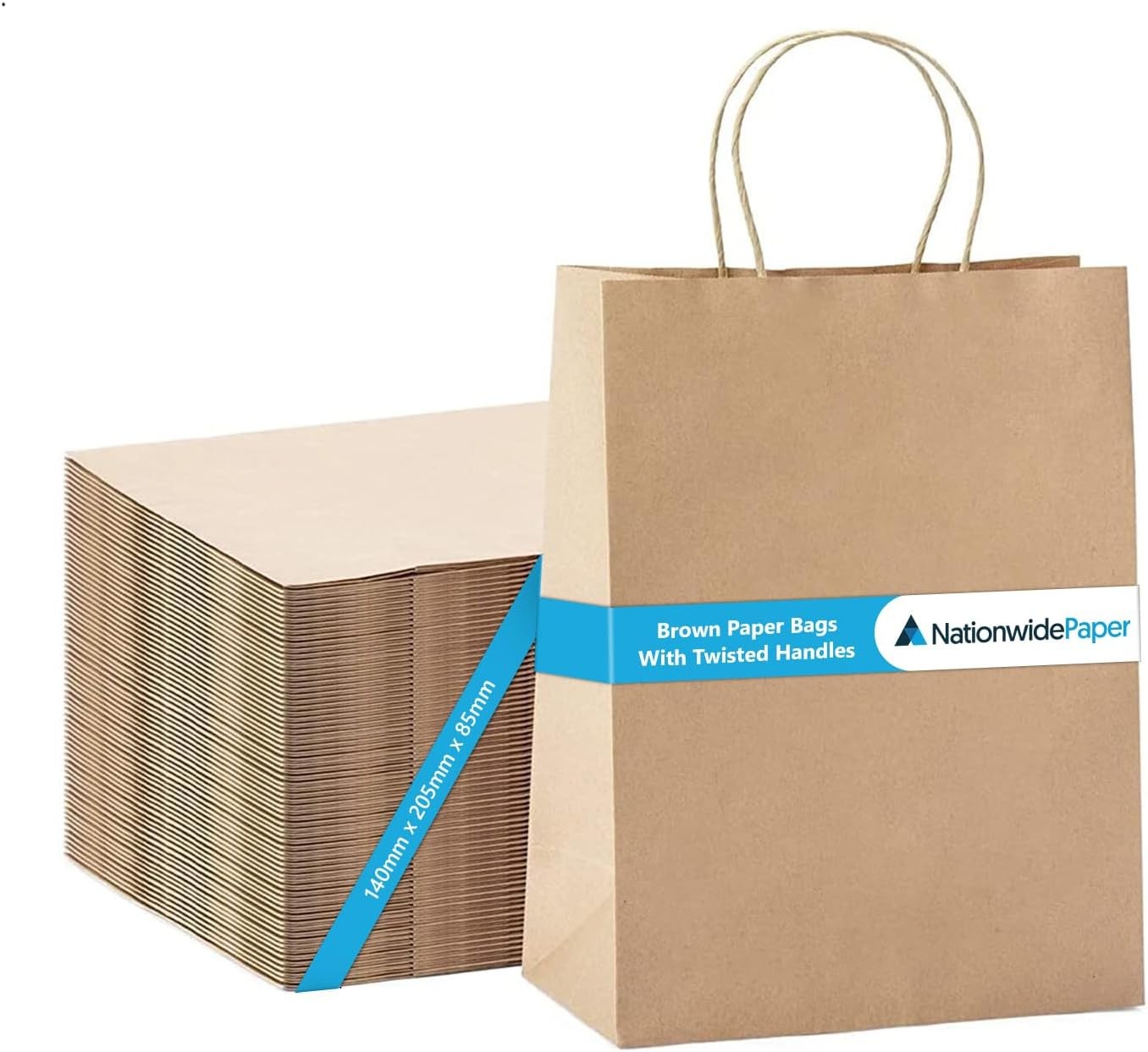 Nationwide Paper 100 Pcs Brown Paper Bags with Twist Handles, Medium Paper Gift Bags, Eco-Friendly Kraft Shopping, Christmas, Easter, Birthday Parties & Merchandise Retail - 20.3x26.7x10.8cm