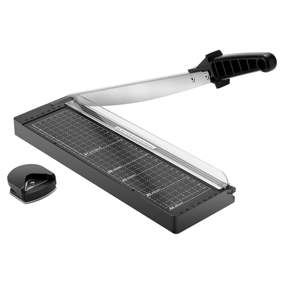 Paper Cutter, 12 Inch Guillotine Paper Trimmer a4 with Automatic Security Safeguard and Side Ruler for Coupon, Craft Paper and Photos (Black)